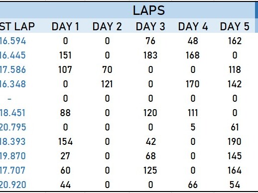 L’ultimo giorno è stato molto più positivo, con oltre 140 giri percorsi e un leggero abbassamento dei tempi.