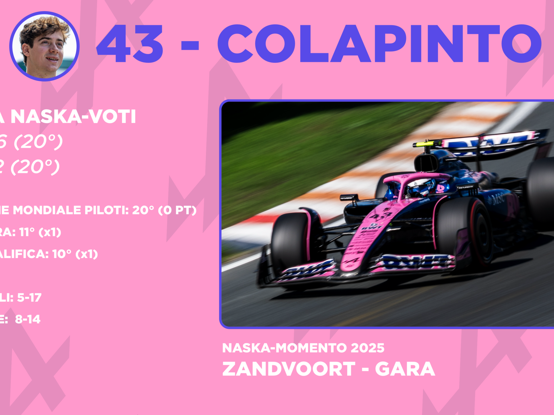 Per Ocon vale il discorso inverso rispetto a Bortoleto. Ha fatto talmente tanta fatica dopo l’estate, soprattutto nel confronto con Bearman, che me l’aspettavo più in basso nella media dei Naska-Voti. Invece, soprattutto grazie alla prima parte di stagione, ha messo tanto fieno in cascina. Preoccupante il non trovarsi con vetture nervose come piacciono a Ollie, perché di solito le vetture puntate sono più veloci; l’anno prossimo dovrà fare uno scatto se non vuole rischiare nel mercato piloti.