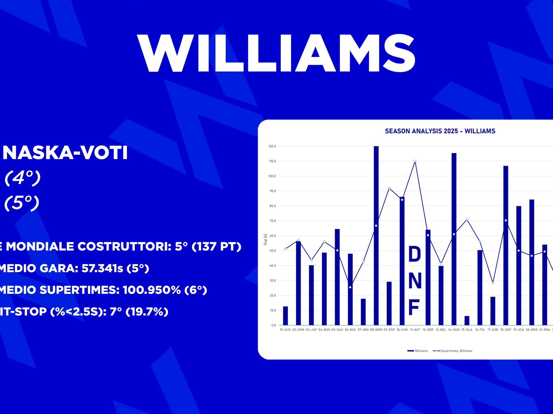 Stagione eccezionale per la Williams, per me sono addirittura quarti nella media dei Naska-Voti con un 6.75 che è un valore davvero ottimo.