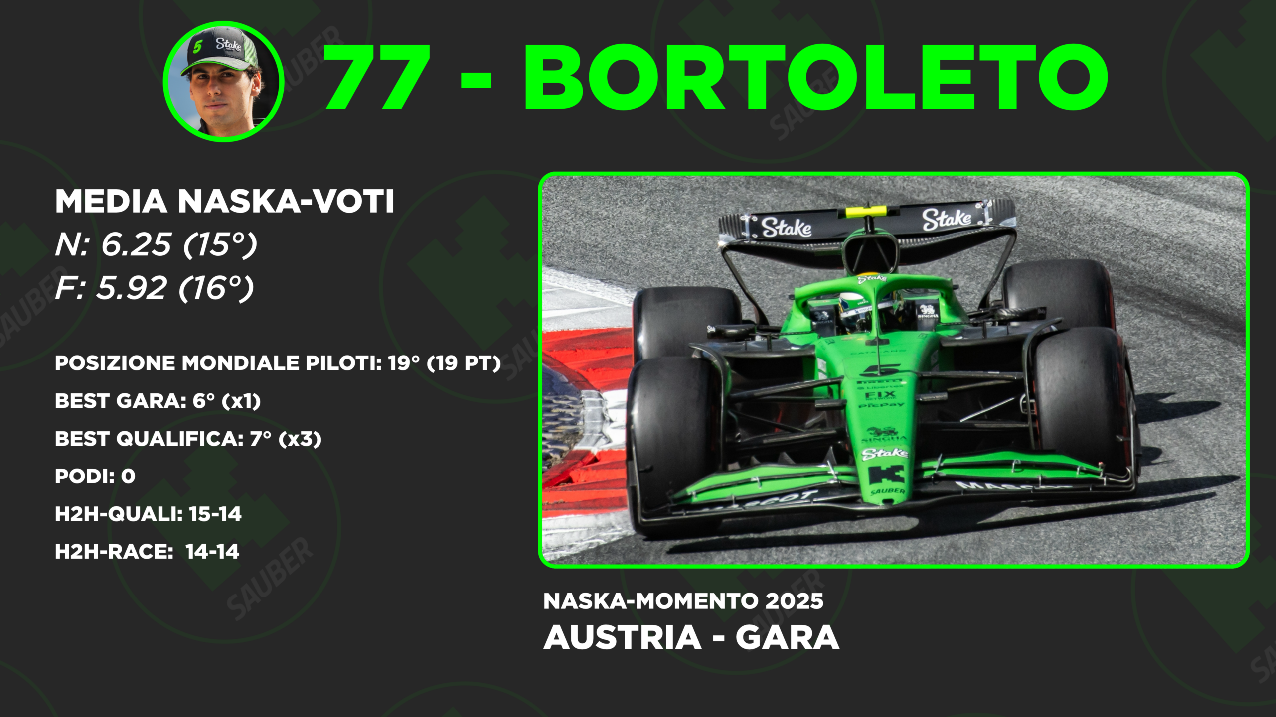 In alcuni momenti della stagione ho pensato che Bortoleto avrebbe concluso molto più in alto in questa classifica. Soprattutto da Spa in poi, quando ha iniziato a battere regolarmente Hülkenberg in qualifica. Si è difeso molto bene nel giro secco e anche in gara, con un compagno di squadra esperto e veloce, ma rispetto agli altri rookie è mancato qualche picco in gara qua e là. Comunque, molto positiva come prima stagione, almeno per me; per voi, media addirittura insufficiente!