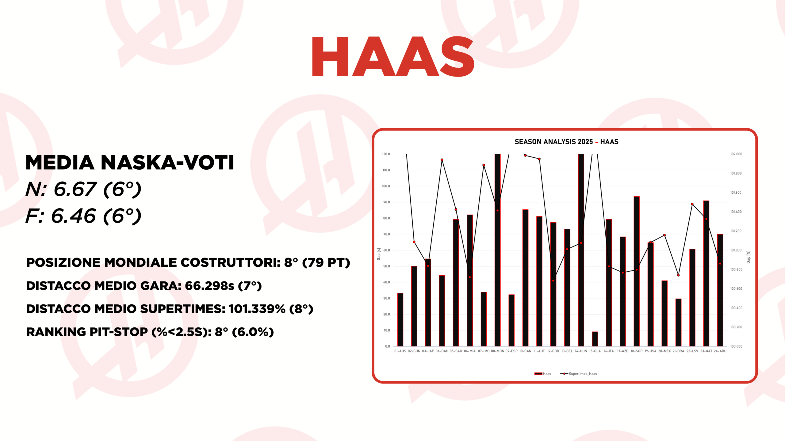 Stagione così e così per la Haas, che però sia io che voi abbiamo valutato come più che sufficiente.