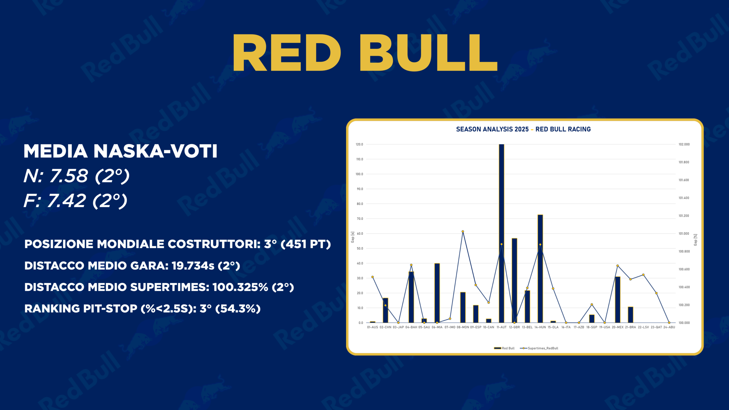 Qui si inizia a salire con la media dei voti. Seconda la Red Bull per me anche per voi, con un voto intorno al 7.5 che è salito vertiginosamente nella seconda parte di stagione.