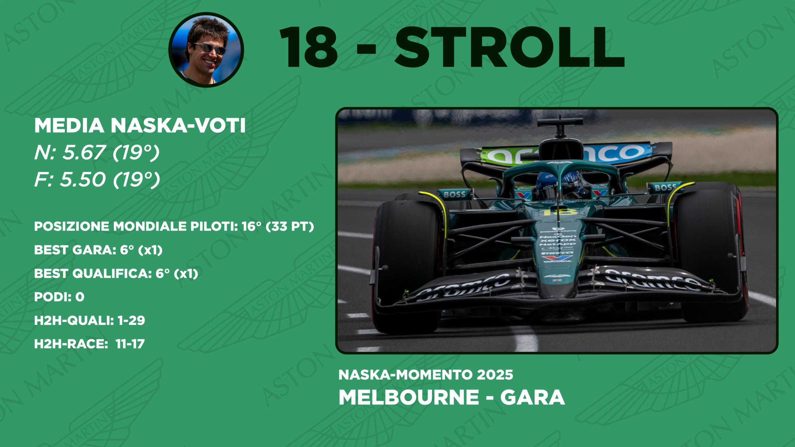 Pensate un po’, avete valutato con più cattiveria voi la stagione di Stroll! Anche per me, però, una media insufficiente. Molto negativo il confronto con Alonso in qualifica, addirittura 29-1 tra qualifiche standard e Sprint. Un po’ meglio il discorso in gara, il che giustifica i tanti punti fatti da Lance: ha colto qualche occasione importante, come Melbourne. Ma rimane una stagione negativa, nella quale tante volte è sembrato un po’ apatico. Nel 2026 ritroverà il morale? Chissà.