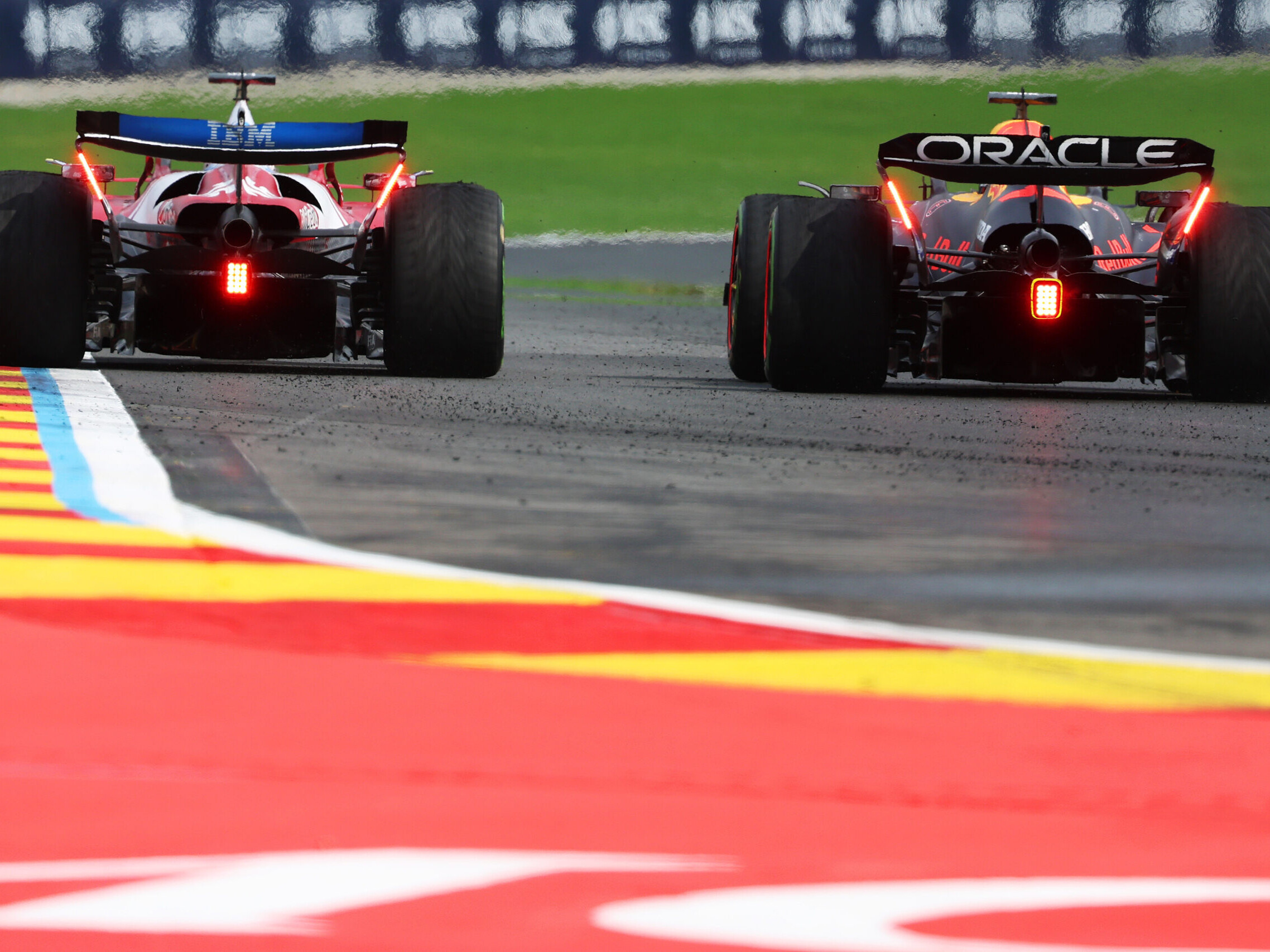Norris sbaglia in uscita da La Source, Piastri gli prende la scia e lo passa sul rettilineo del Kemmel. Le due McLaren con le Intermedie scappano via, mentre Leclerc riesce a tenere dietro Verstappen nonostante un duello intenso e un tentativo di sorpasso di Max all’esterno di Puhon. L’unico che dà spettacolo è Hamilton, che ha cambiato la Power Unit e montato un’ala posteriore più carica per andare più forte sul bagnato.