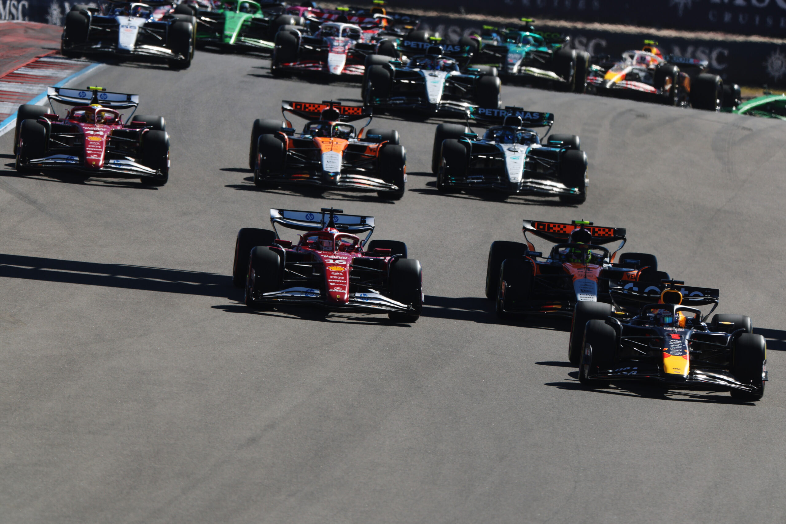 Hülkenberg si gira e questo crea il caos a centro gruppo. Leclerc, che aveva tirato una mega staccato su Hamilton, prima inchioda, poi sfrutta un piccolo varco nel caos per ripassare il compagno di squadra. Antonell i perde molte posizioni, mentre ne guadagnano tante Russell e Sainz, che si piazzano in coda a Verstappen. Partenza clamorosa di Tsunoda che dall’ultima fila passa metà griglia in staccata.