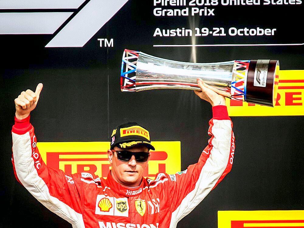 Gli uomini della Ferrari sono felicissimi per Kimi. Lui… è così sul podio.